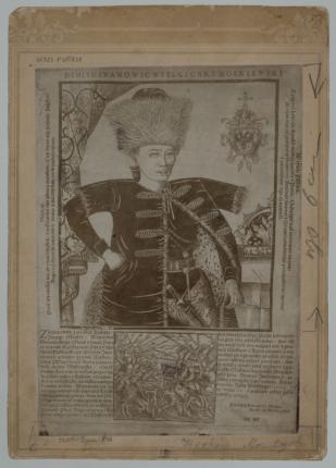 Description:Recto odbitki: ołówkiem linie kadrowania. Recto kartonu: adnotacje ołówkiem: „5.”, [sygn.] „IHSUJ P 015831”, „wys 6 cm”, „Czart Dymitr”, „Kraków Muz. Czart.”, „12”; ołówkiem linie kadrowania i strzałki. Verso kartonu: pieczęć „APARAT HISTORYI SZTUKI / UNIWERSYTETU JAGIELLOŃSKIEGO / [nr inw.] 6691”; pieczęć „G”; adnotacja atramentem „[B]ardzo rzadki sztych in folio – jeden egzemplarz znajduje się w Muzeum / [C]zartoryskich w Krakowie – drugi naklejony na okładce papierowej odszuka / no świeżo w archiwum Ks. Sanguszków w Sławucie (1.VII.1899. Sławuta) / (od Br. Gorczaka)”; adnotacje ołówkiem: „?”, [przekreślona] „2 1/2 x 6 1/2”; naklejona etykieta „INSTYTUT HISTORII SZTUKI / UNIWERSYTETU JAGIELLOŃSKIEGO / ARCHIWUM FOTOGRAFICZNE” wypełniona na maszynie: [Zabytek, Przedmiot zdjęcia] „«Dymitr Iwanowicz Wielki Car / Moskiewski» – bardzo rzadka / grafika in folio – jeden / egzemplarz w Muzeum Czarto- / ryskich w Kra- / kowie, drugi znajdował, się / w archiwum ks. Sanguszków / w Sławucie”; naklejona koperta z adnotacją długopisem „TEKST” zawierająca kartkę z tekstem na maszynie.