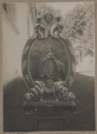 Recto tektury: adnotacja ołówkiem [sygn.] „IHSUJ P 002680”. Verso tektury: naklejona etykieta „INSTYTUT HISTORII SZTUKI / UNIWERSYTETU JAGIELLOŃSKIEGO / ARCHIWUM FOTOGRAFICZNE” wypełniona na maszynie: [Miejscowość] „JELEŚNIA", [Powiat] „żywiecki”, [Województwo] „krakowskie”, [Zabytek] „kościół parafialny”, [Przedmiot zdjęcia] „feretron”, [Autor zdjęcia] „L. Lepszy”, adnotacja ołówkiem „22”.