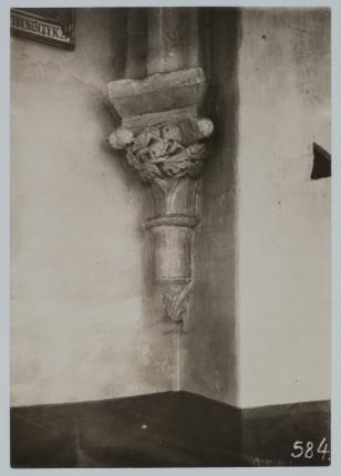Recto odbitki: z negatywu adnotacje: „584.”, „177P” [w odbiciu lustrzanym]. Verso odbitki: adnotacje ołówkiem: [sygn.] „IHSUJ P 005712”, „584. Mieronice p. Jędrzejowski / kość – paraf. / Konsola żebrowań”.