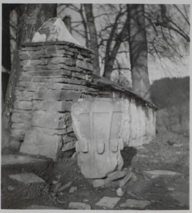 Verso odbitki: pieczęć „URZĄD WOJEWÓDZKI KRAKOWSKI / ODDZIAŁ SZTUKI” wypełniona atramentem: [Nr. .../... kliszy pomiaru] „1. 870”, [ZDEJMOWAŁ] „Inż. B. Treter”, [193... r.] „3”; pieczęć wypełniona atramentem: [Miejscowość] „Przydonica”, [Powiat] „nowosądecki”, [Zabytek] „chrzcielnica / przy kość. p. dw.”; adnotacje ołówkiem: [sygn.] „IHSUJ P 007286”, „Nr. kl. 15435”.