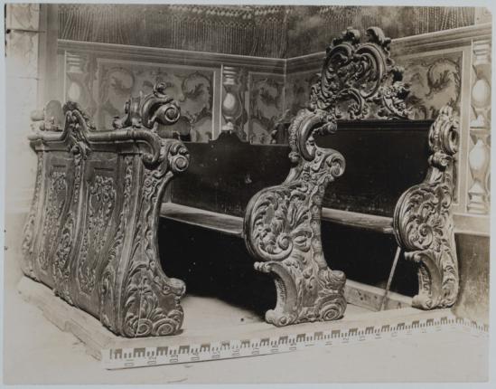Verso odbitki: adnotacje ołówkiem: [sygn.] "IHSUJ P 007311", "3255 Sw. Anna pod Przyrowem / p. Radomskowski [!] / Kość. Klasztorny – ławka w kaplicy", "barokowe".