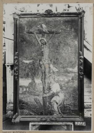 Opis fotografii:Recto odbitki: z negatywu adnotacja „No. 903”. Recto tektury: adnotacje ołówkiem: [sygn.] „IHSUJ P 007312”, „Sam Chrystus jak z ryciny van Dycka por. Sir Anthony van Dyck s. 64”. Verso tektury: adnotacja ołówkiem „60”; naklejona etykieta „ZAKŁAD HISTORII SZTUKI / UNIWERSYTETU JAGIELLOŃSKIEGO / ARCHIWUM FOTOGRAFICZNE” wypełniona na maszynie: [Miejscowość] „Przyrów”, [Powiat] „częstochowski”, [Województwo] „katowickie”, [Nr inw. klisz] „903 B”, [Miejsce przechow. kliszy] „P I S”, [Określenie zabytku] „kościół”, [Przedmiot zdjęcia] „obraz gobelinowy «Ukrzyżowanie»”; na etykiecie adnotacja ołówkiem „60”.