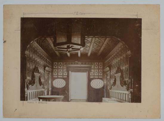 Opis fotografii:Recto kartonu: adnotacja ołówkiem [sygn.] „IHSUJ P 007608”; ołówkiem linie kadrowania i strzałki z adnotacją „12 cm”. Verso kartonu: pieczęć „Z HS UNIW. JAGIELL.”; adnotacja ołówkiem „25”; naklejona etykieta „INSTYTUT HISTORII SZTUKI / UNIWERSYTETU JAGIELLOŃSKIEGO / ARCHIWUM FOTOGRAFICZNE” wypełniona na maszynie: [Miejscowość] „Rogów”, [Powiat] „Kazimierza Wielka”, [Województwo] „kieleckie”, [Zabytek] „dwór”, [Przedmiot zdjęcia] „wnętrze sieni XVIIw.”, [Autor zdjęcia] „T. Szydłowski”. Publ.: T. Szydłowski, Dwór w Rogowie. Zabytek budownictwa drewnianego XVII wieku, Kraków 1918, il. 13.